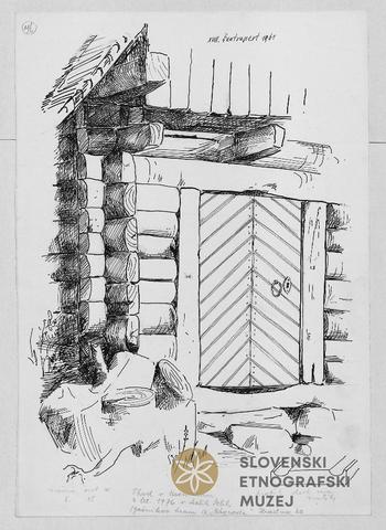 Vhod v lesen hram z letnico 1776 v Malih Selih. Gačnikov hram iz "Zagrada", lastnik Vinko Gačnik, Hrastno 20.