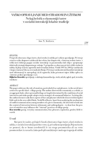 To date Slovene ethnology has avoided explicit discussions of emotions.