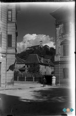 Pogled z Valvazorjevega trga (Trg francoske revolucije) na Ljubljanski grad.