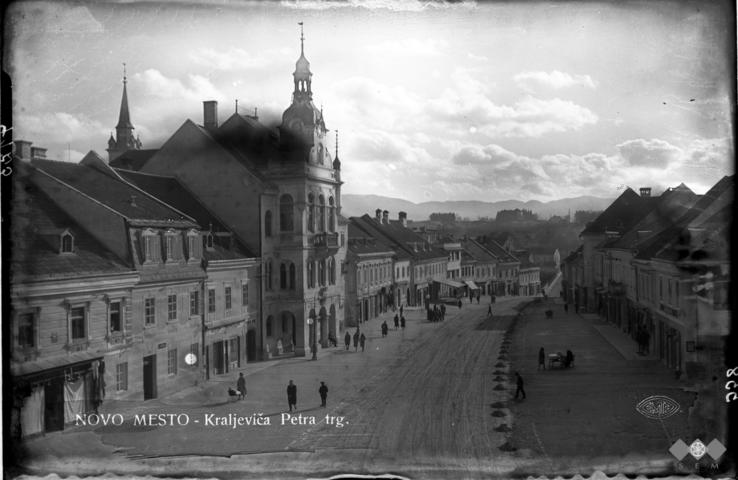 Kraljeviča Petra trg (danes Glavni trg) z Mestno hišo (Rotovžem) v Novem mestu.