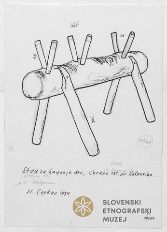"Stou" (stol) za žaganje drv. Lastnik pri Kašperinu, Cerkno 181.
