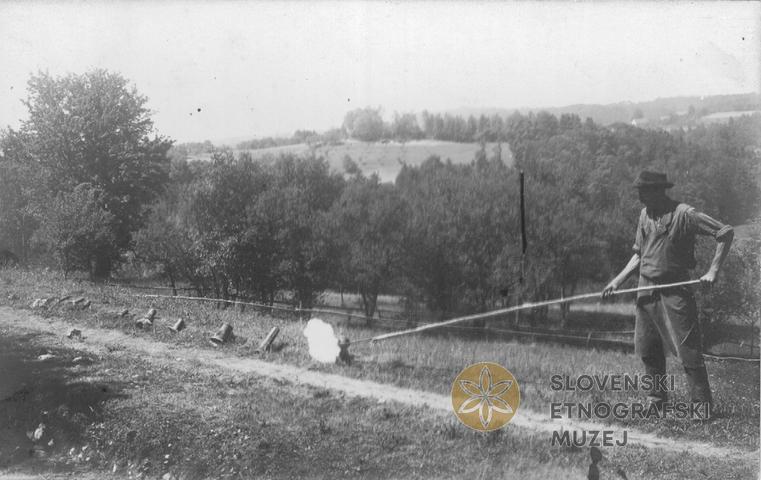 Streljanje z možnarji ob priliki Korenove slavnosti na Ponikvi, Jurij Ratajc, vulgo pri Kovaču.