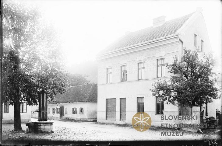 Hiša št. 42 in vodnjak v Mengšu.