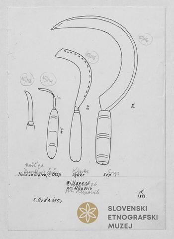 Nož za lupljenje sliv (nošč za luplenje češp). Lastnik Franc Sirk, pri Hlipovih, Biljana 26.