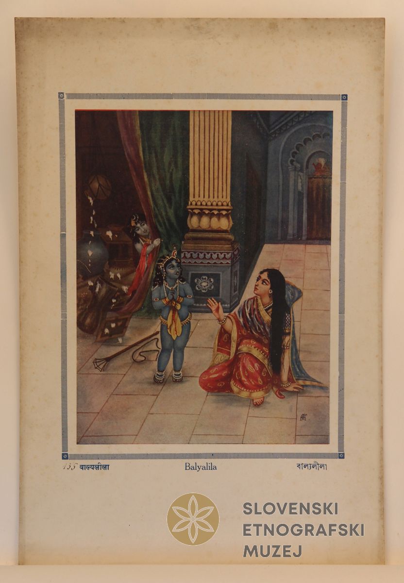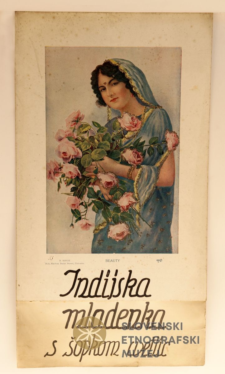 Indijska zbirka slik in tiskov sodi v t.i. »indijsko bazarsko umetnost« (‘Indian bazaar art’), ki so jo zbirali (nakupovali) na tržnicah Kolkate in Mumbaja na začetku dvajsetega stoletja. Čeprav je bilo podobnih slik v tistem času v Indiji na pretek, bile so poceni in so jih meščani zlahka nabavljali, so danes prava redkost in se le redki muzeji v Indiji lahko ponašajo s takimi zbirkami. Zbirka vsebuje propagandne tiske iz tistega časa, slike hindujskih božanstev, pokrajin, kulturnih spomenikov in romantičnih prizorov. Še posebej je dragocena in nenavadna zaradi slik indijskih gledaliških in filmskih igralk s pomočjo katerih spoznavamo takratno portretiranje indijskih žensk in stereotipizacijo njihovih identitet. Slike so zbrali slovenski misijonarji, ki so delovali v t.i. Bengalskem misijonu in predstavljajo tako del indijske kot tudi slovenske zgodovine. Pošiljali so jih v domovino, kjer so imeli po župniščih predavanja o svojem delu in so jih uporabljali v didaktične namene. Najverjetneje so bile razstavljene tudi v Indijskem misijonskem muzeju v Ljubljani. Slovenski etnografski muzej jih je dobil od Federalnega zbirnega centra.