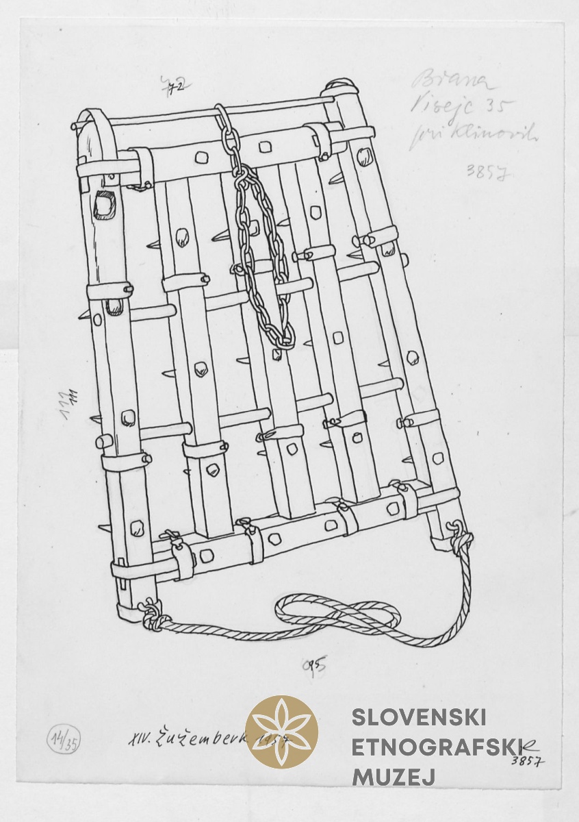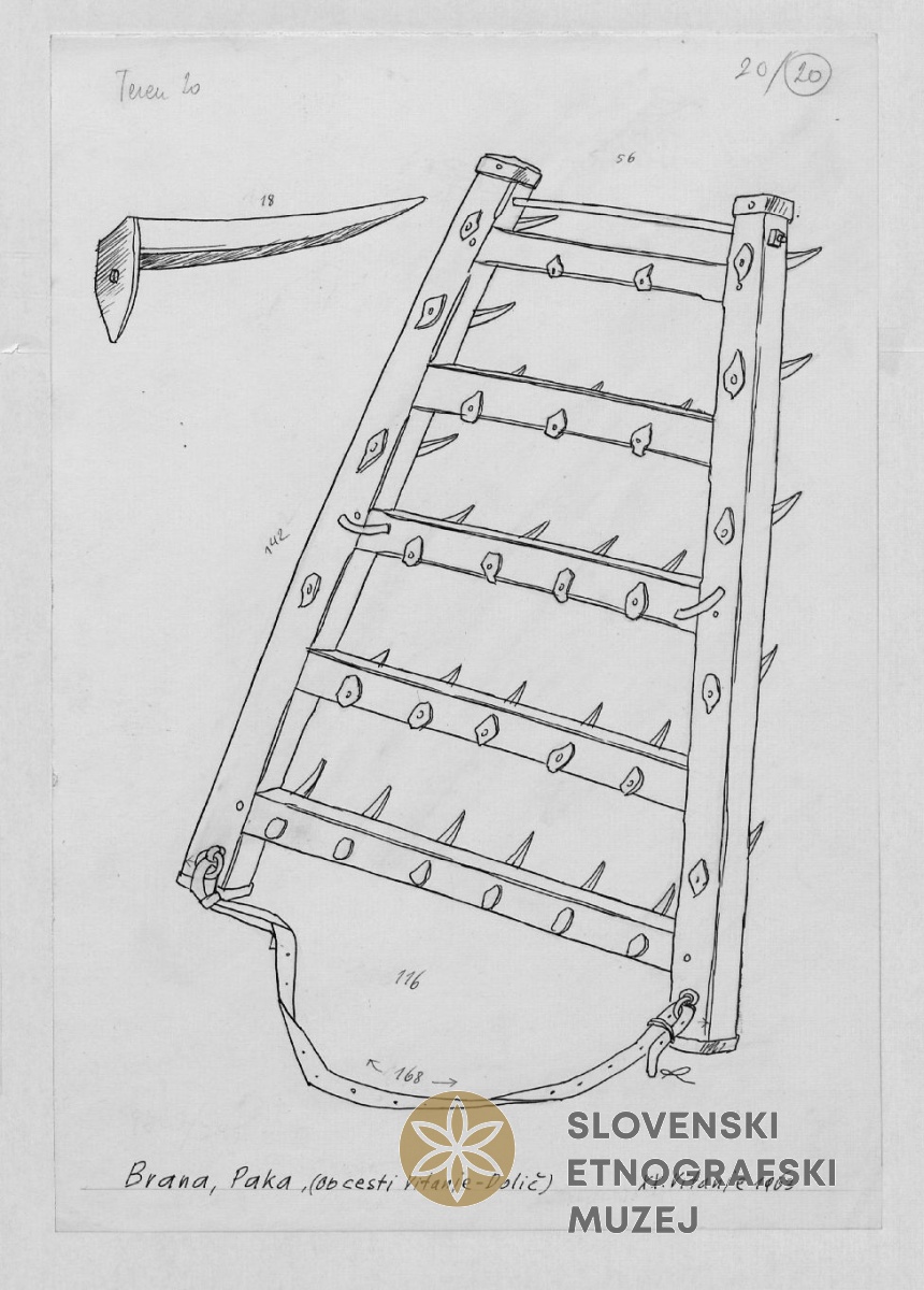 "Grapa", brana z lesenimi klini. Labor 9, lastnik Ivan Kocjančič...