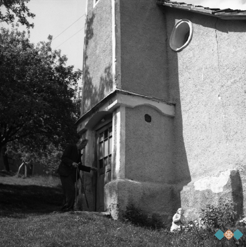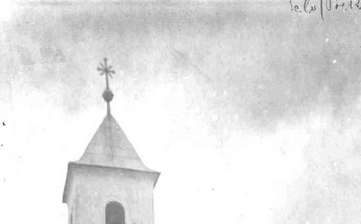 Cerkev ob pokopališču. Danes cerkve ni več, sezidana je nova na drugi lokaciji.