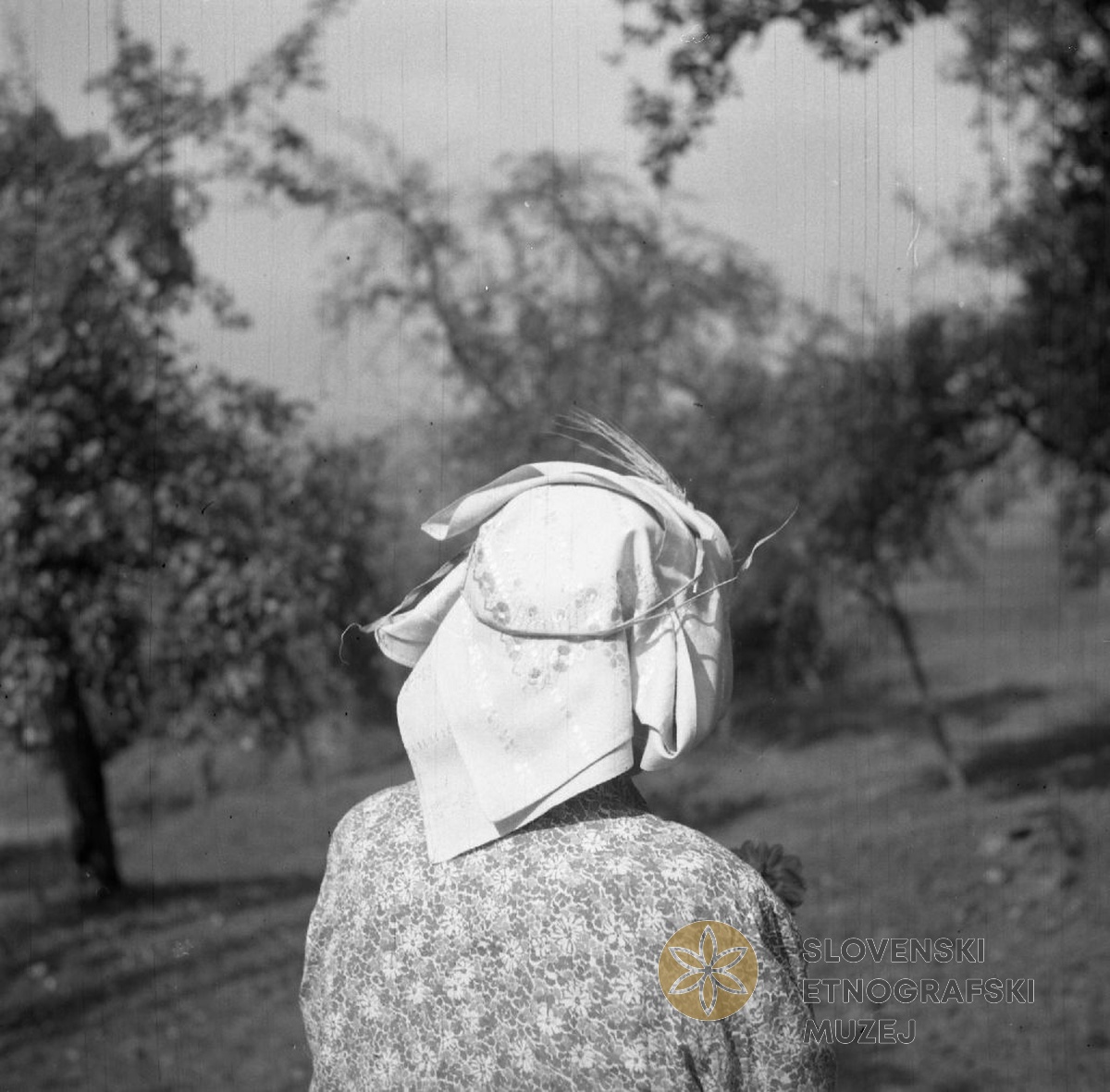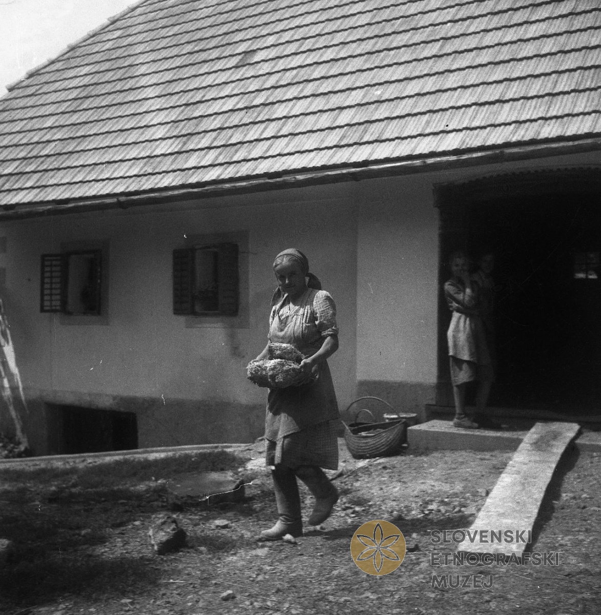 Žena iz "Starsedla" (Staro selo) gre na polje (noša). Teren 7 - Kobarid, 3.7. - 3.8.1951...