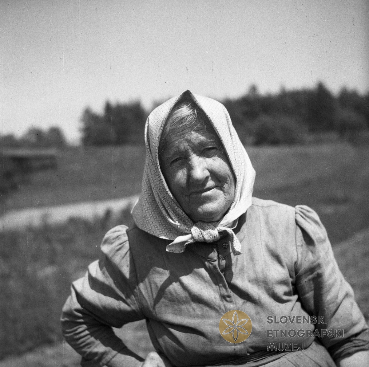 Marija Lipovec, 76 let (pri Polezovih), oblečena za na polje, Ritomeče 9. Teren 12- Brkini (1.-31.8...