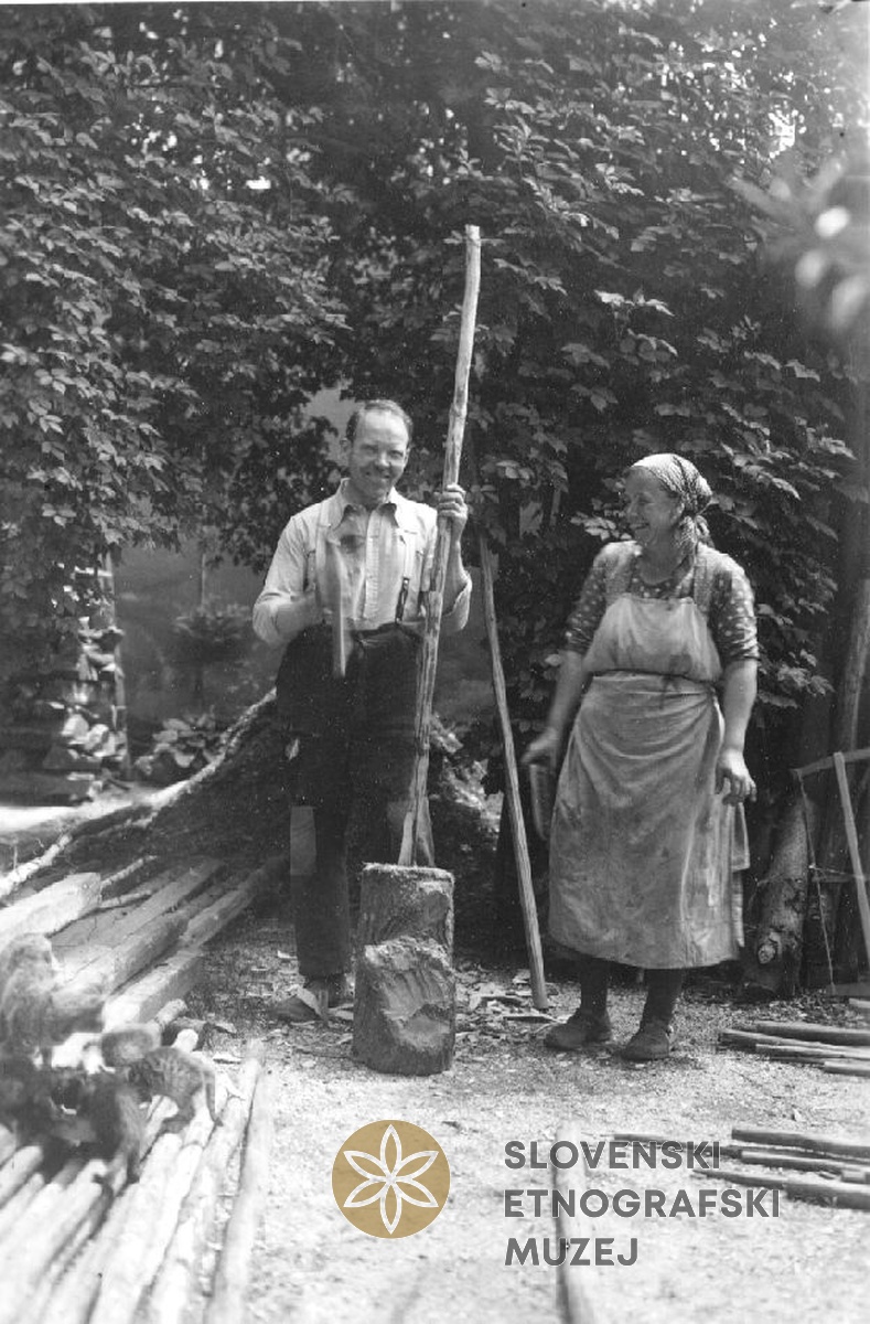 Moški v delovni noši ob preši, Spodnja Štajerska.
