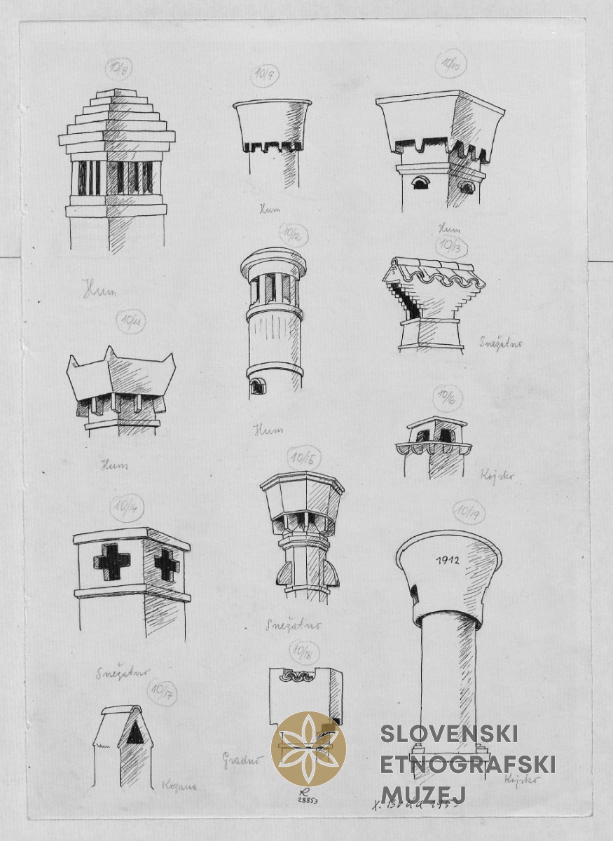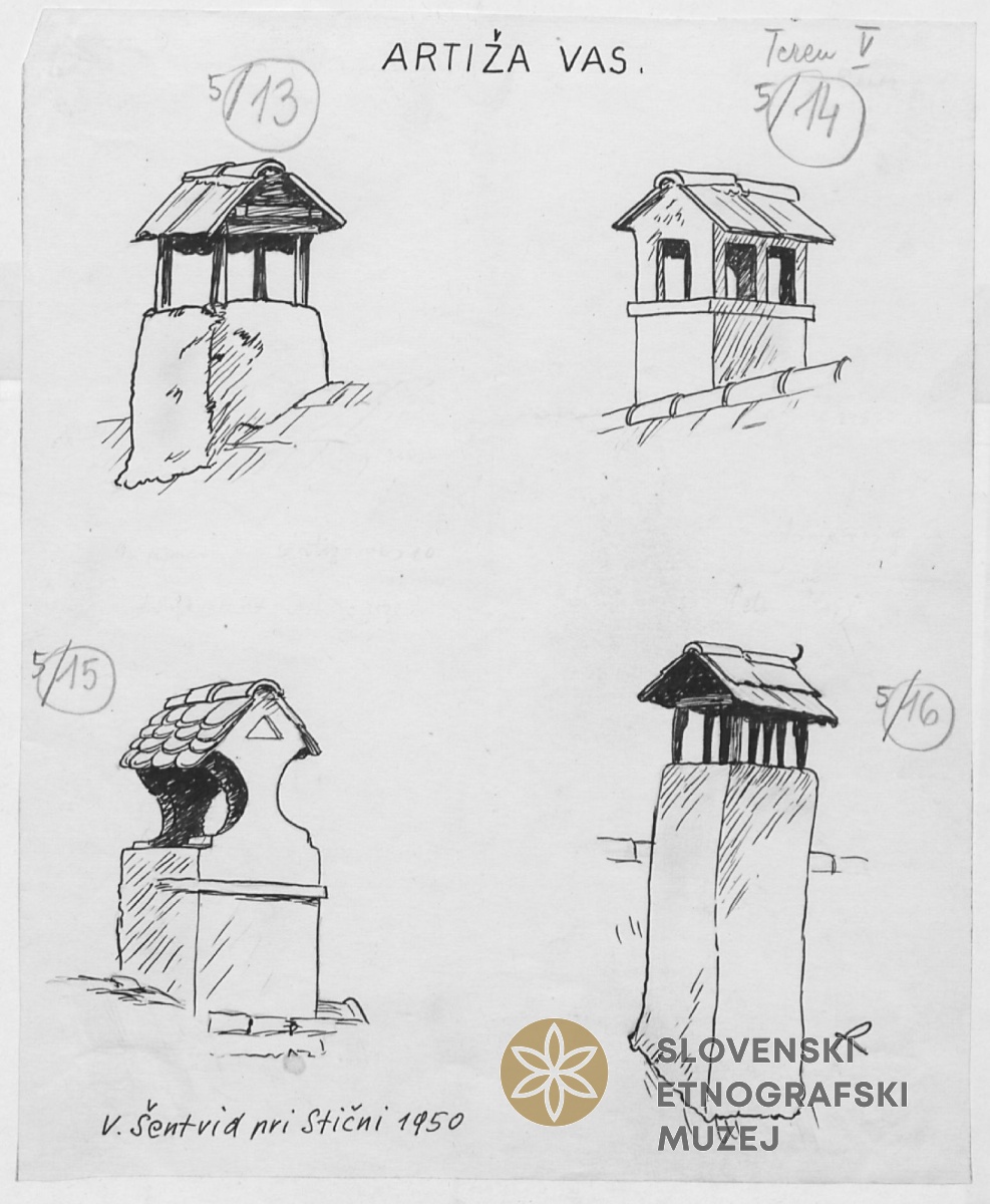 "Raufənk" (dimnik) na ispi v hiši, "u Močil", Dolenji Novaki 29. Teren 11-...