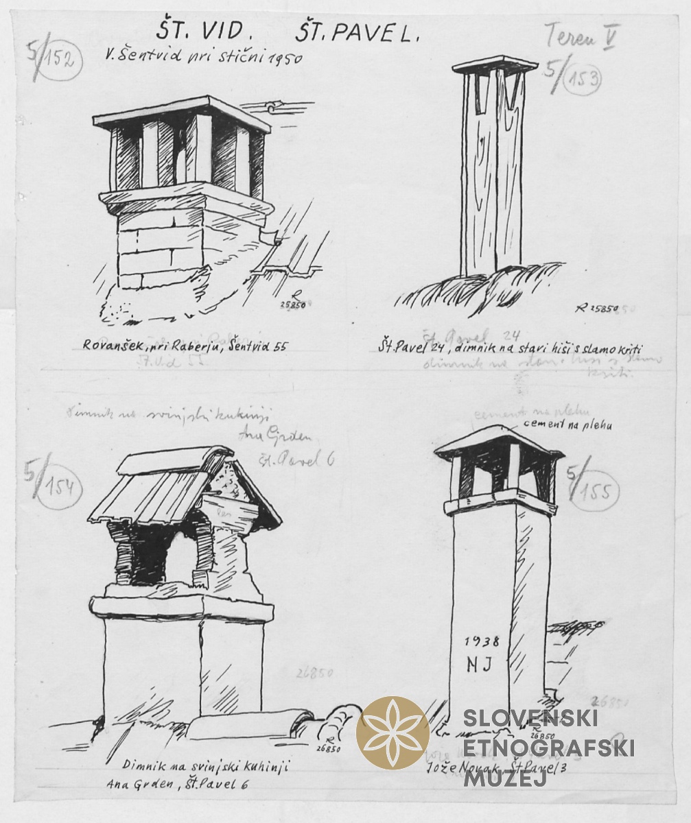 Stari in novi dimnik pri Ferjanščovih, Podraga. Teren 15 - Vipava, 1. - 28.8.1958.