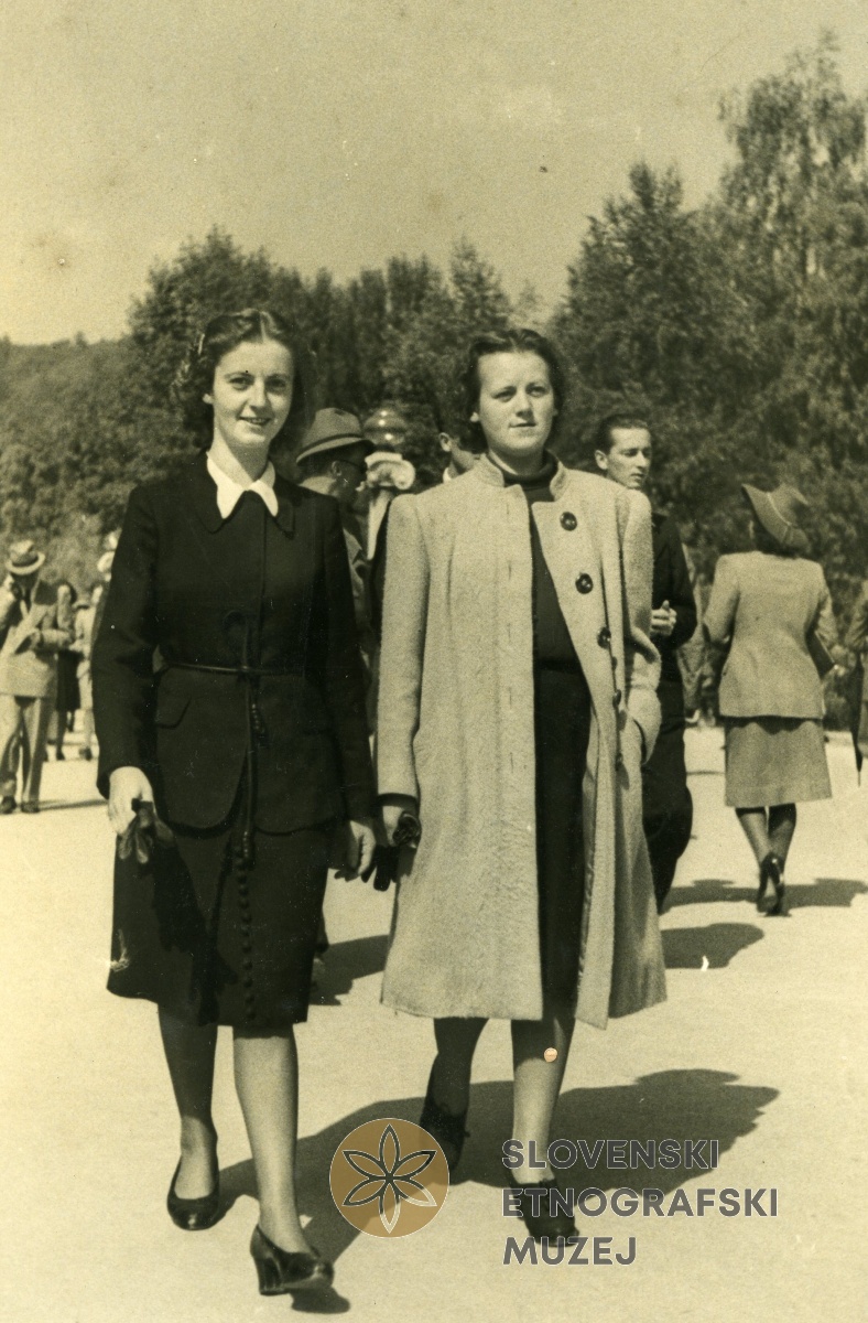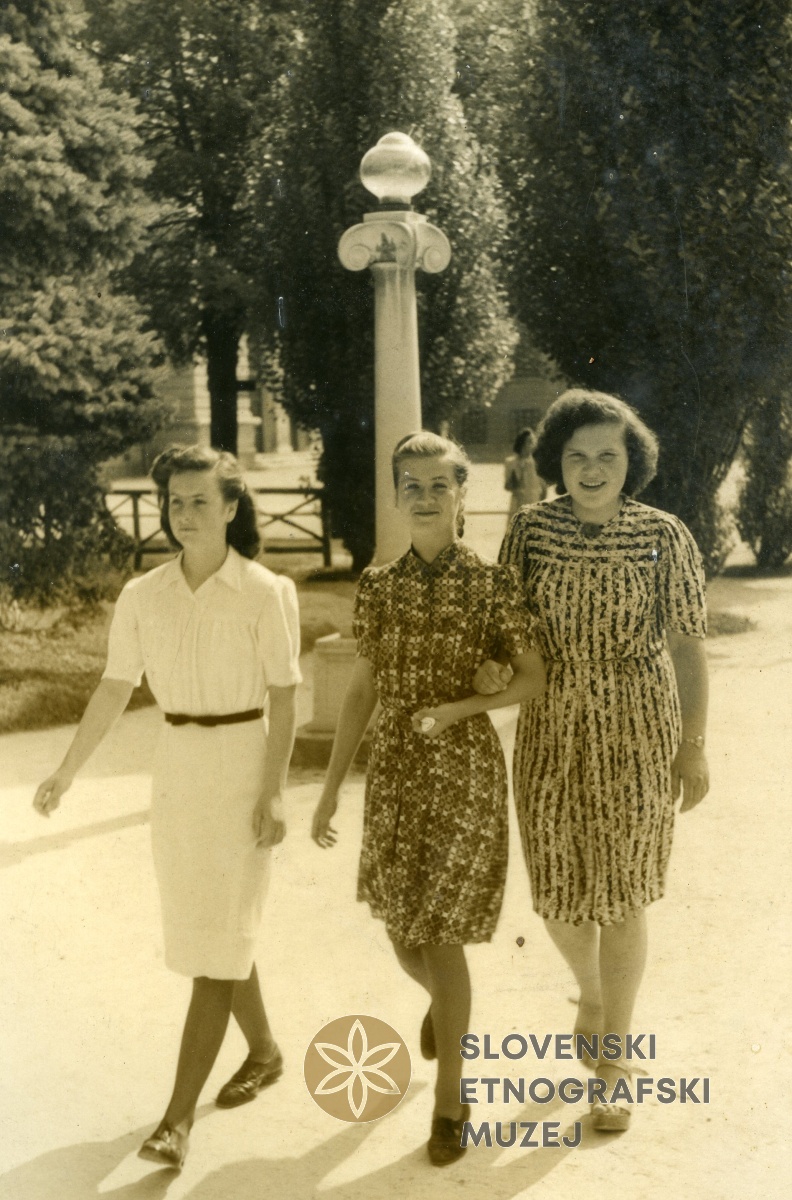 Dve gospe in mlada dama na ljubljanski promenadi.