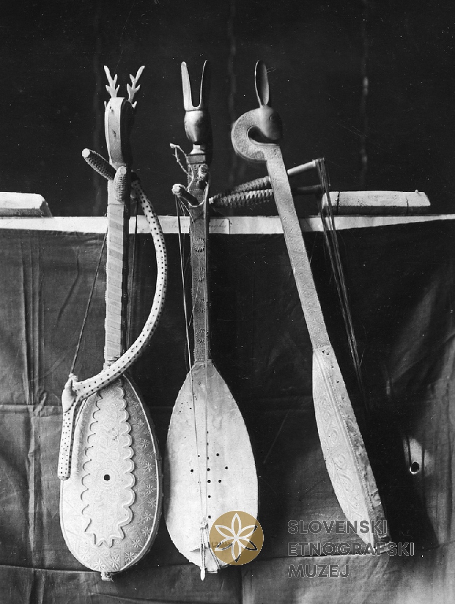 Godba iz Slop, slikana 1923 v Materiji. Dobila ekipa SEM na terenskem delu v Brkinih l. 1955.