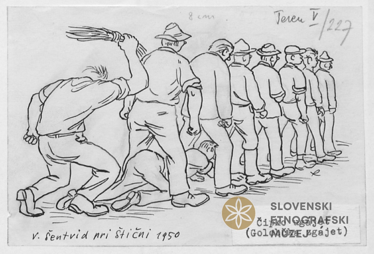 Pintarjev Tone iz Stične kaže, kako je treba pripraviti "Mlatiče"- igra. Teren 5- Št. Vid...