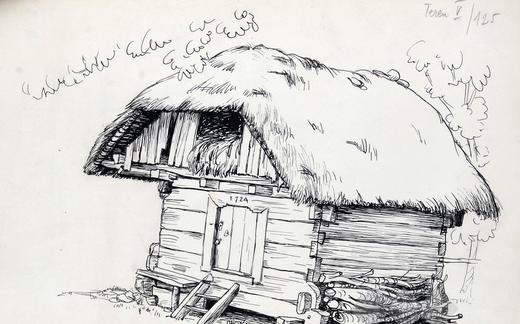 Kašča iz lesa brez podzidane kleti pri Pavelnovcu, Rut št. 8. Iz fototeke študentskih ekip...