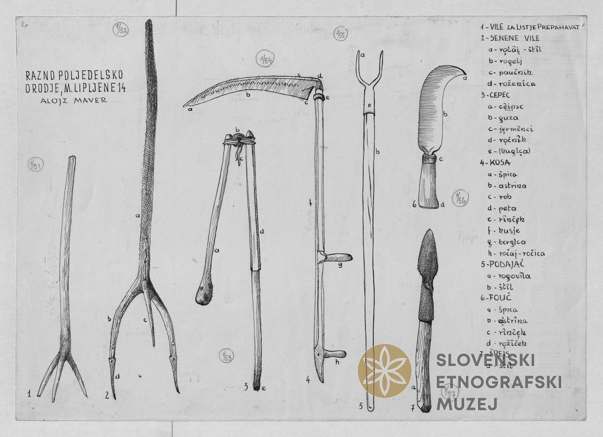 Razno poljedelsko orodje, senene vile, Male Lipljene 14.
