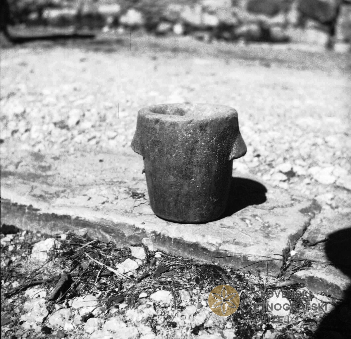 "M?rtau" (možnar) za "pute" (lupine) orehove tolči. Lastnik Anton Konavec,...