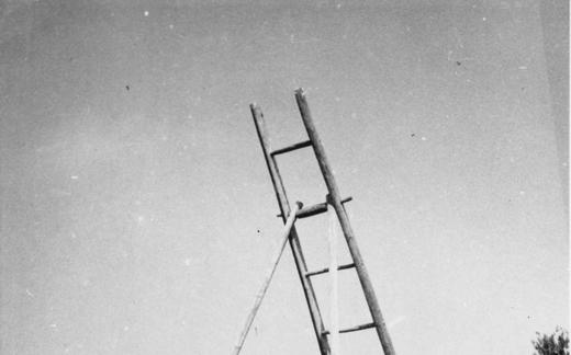 Strašilo na njivi v Babnem Polju. Teren 19 - Loška dolina (1.-15.8.1962).