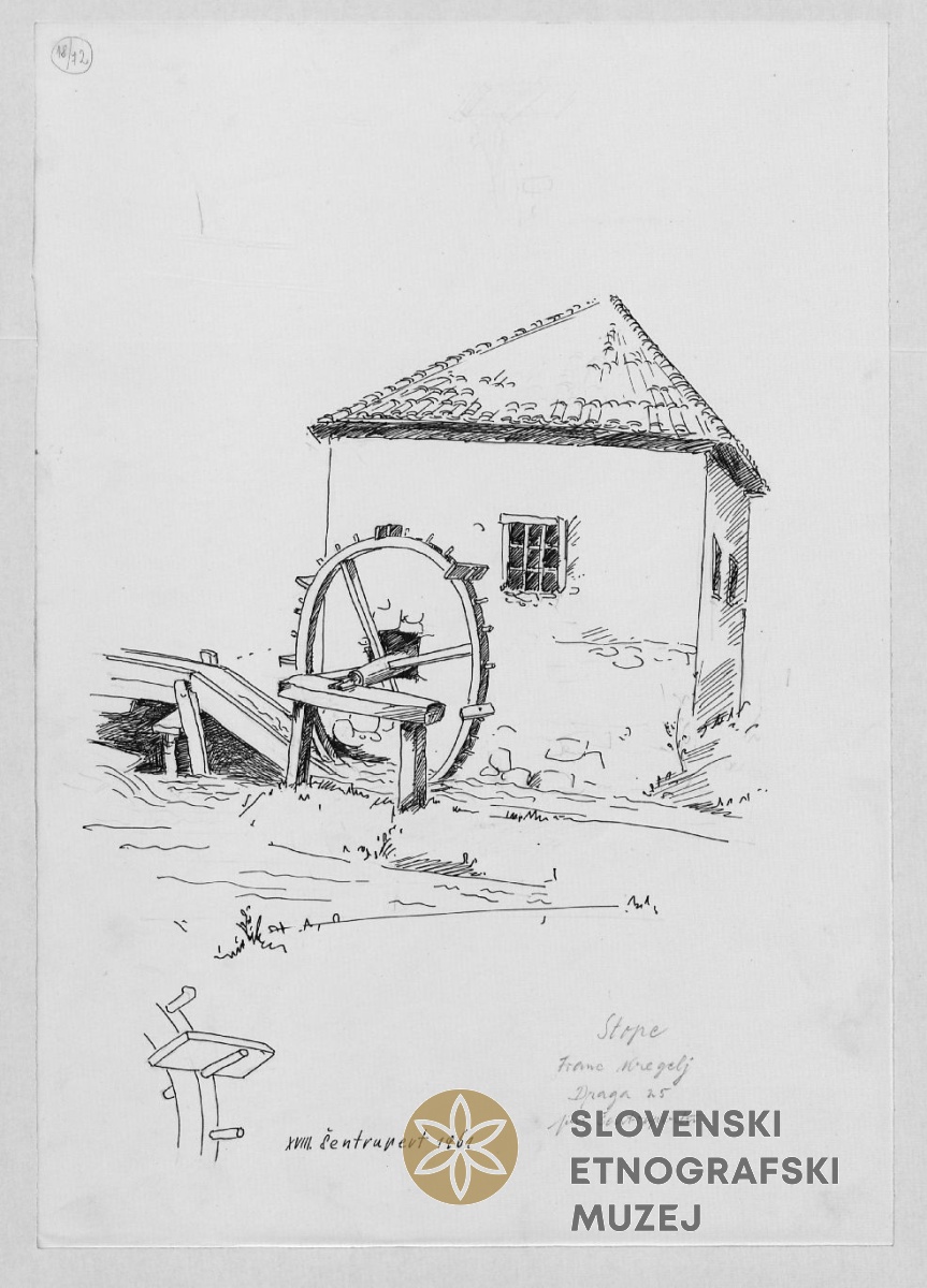 Maln (mlin) za žito, za fermentin (koruzo), Gradišče 29, Vouk Andrej, pri Šimunovih.