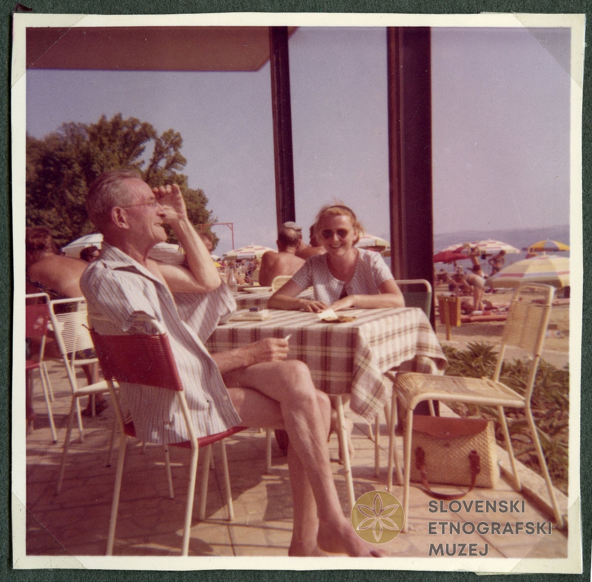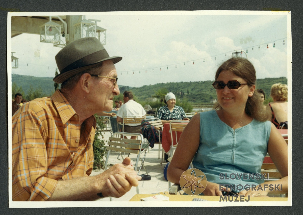 Joža in Hilda Kozak v lokalu ob plaži, Crikvenica 1964. V: album VI, Rogelj - Poirier.