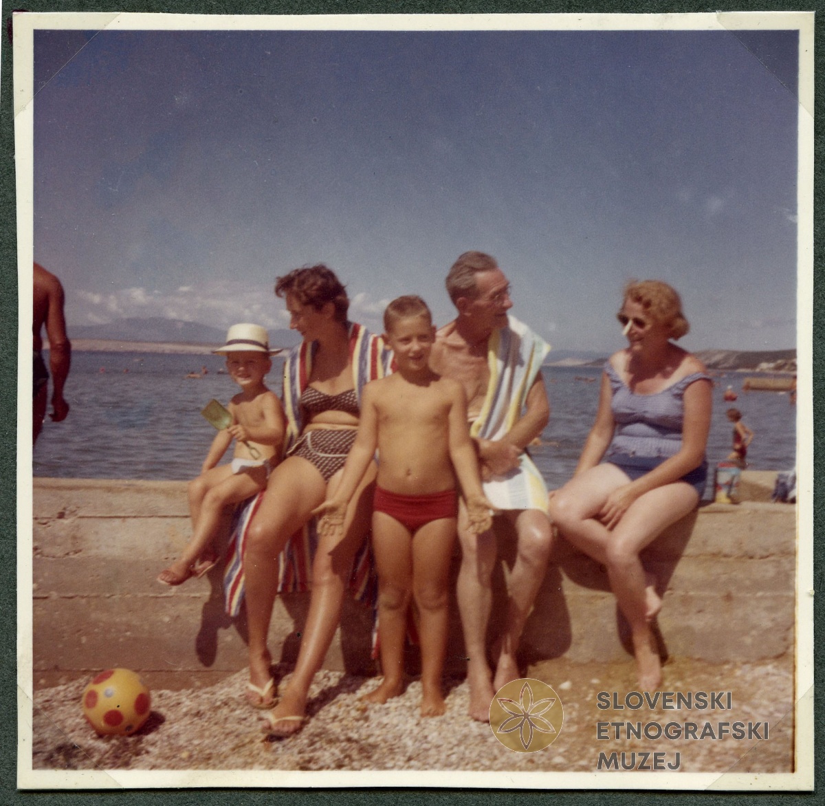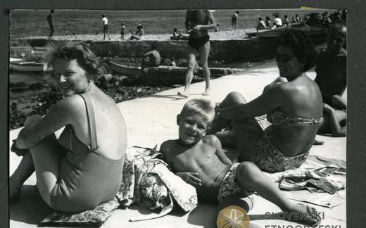 Družina na plaži. Šilo, otok Krk, 1966. V: album VI, Rogelj - Poirier.
