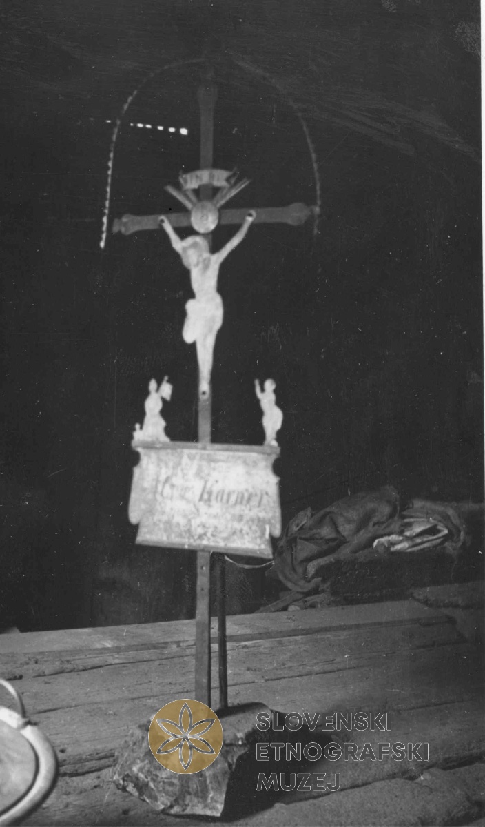 Nagrobni križ s procesionalnim križem na Zilji. Iz fototeke študentskih ekip. Pridobljeno leta 1961...