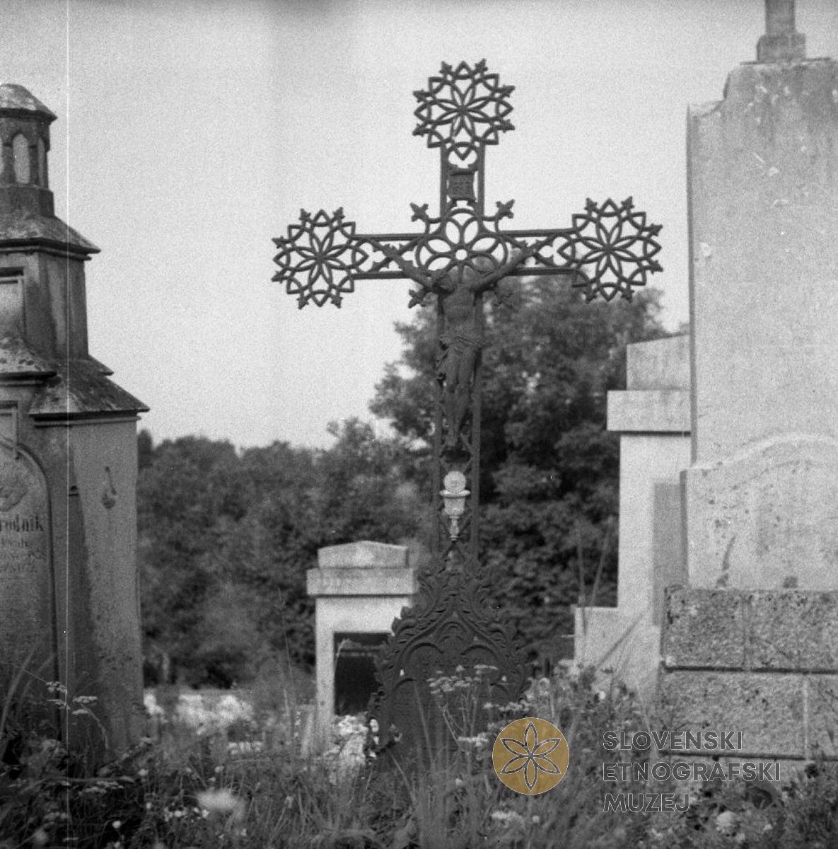 Železen nagrobni križ na pokopališču v Žužemberku. Ti križi po verjetnosti večidel izdelki...