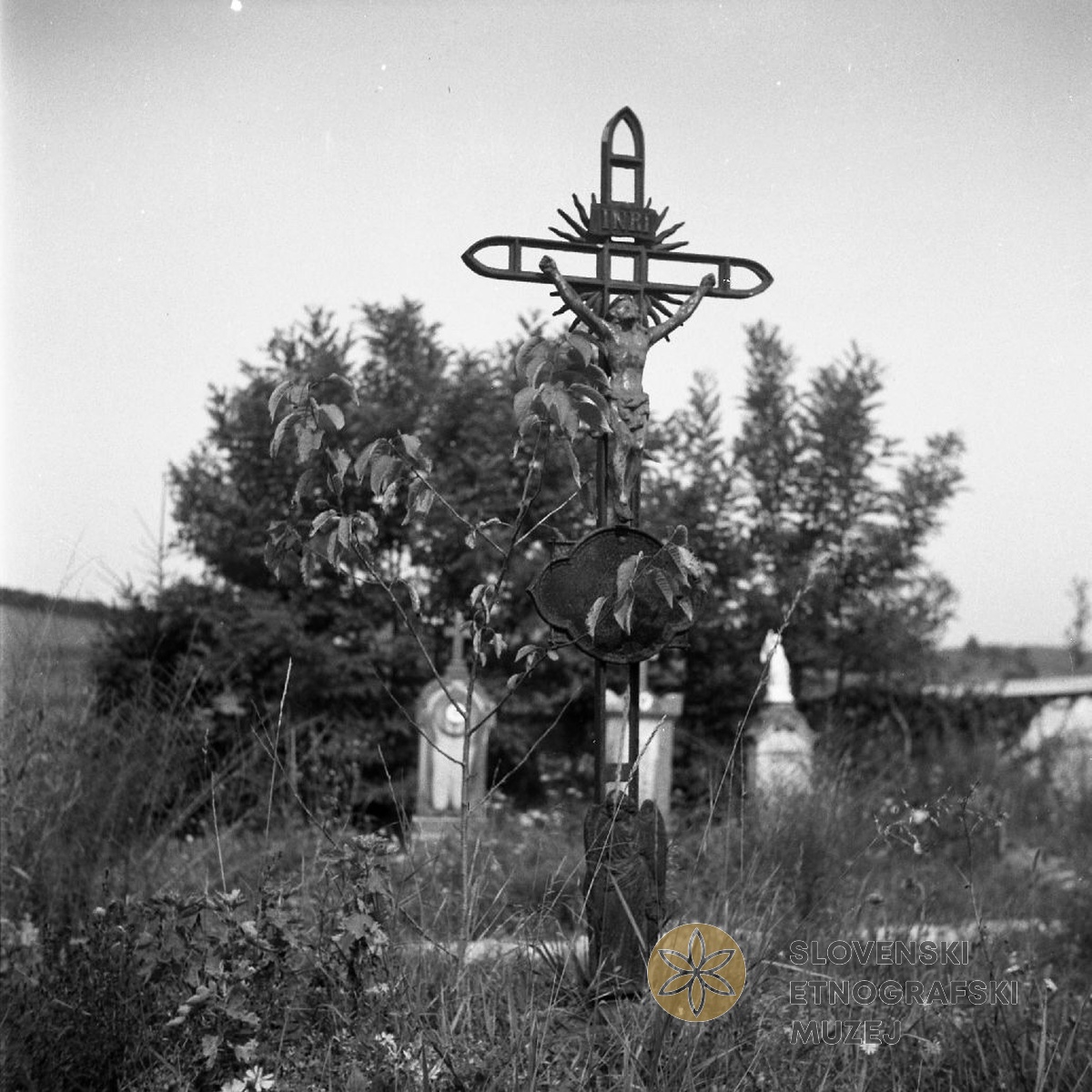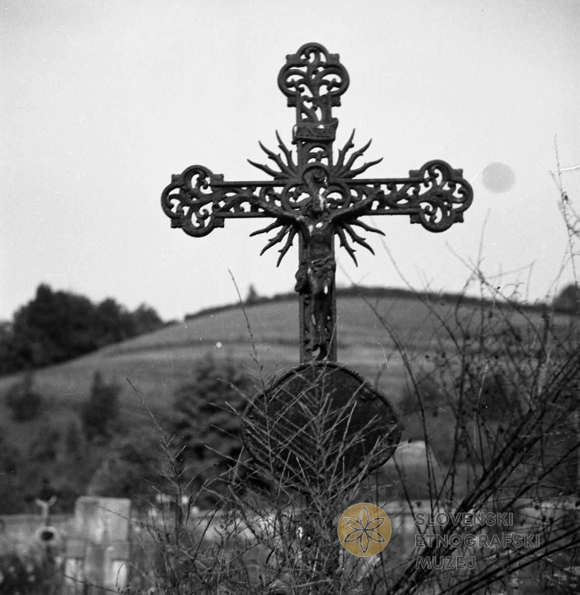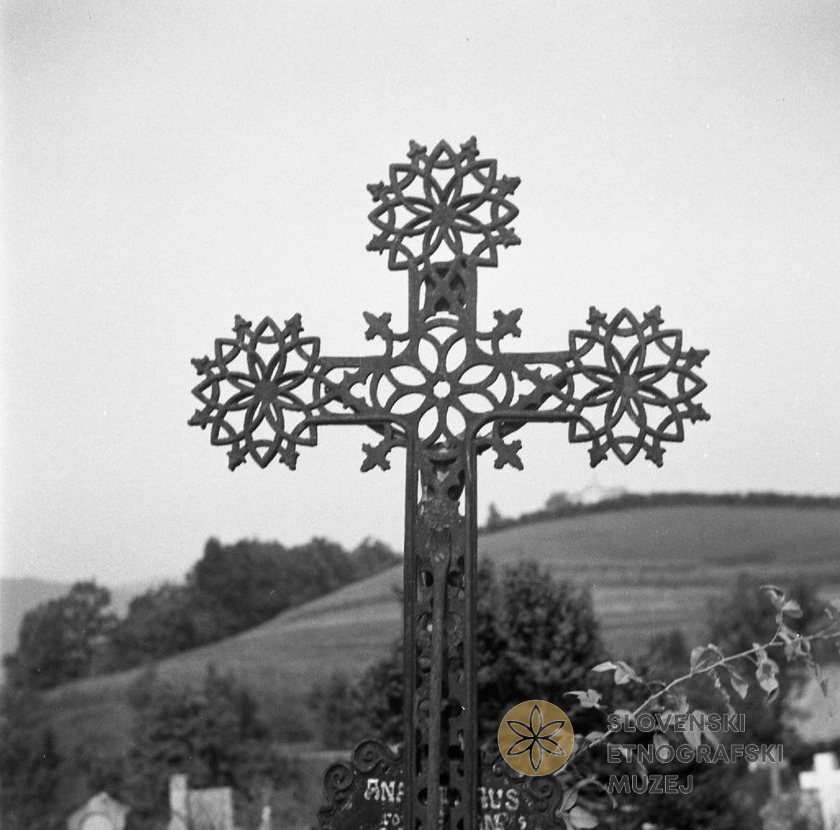 Železni nagrobni križ, domače kovaško delo. Iz fototeke študentskih ekip. Pridobljeno leta 1961...