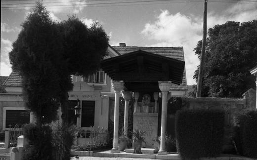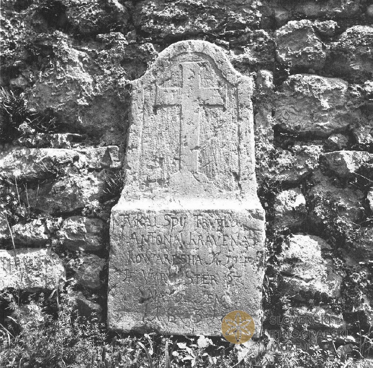 Nagrobni spomenik (slovenski) na vzhodni strani pokopališkega obzidja. Iz fototeke študentskih ekip...