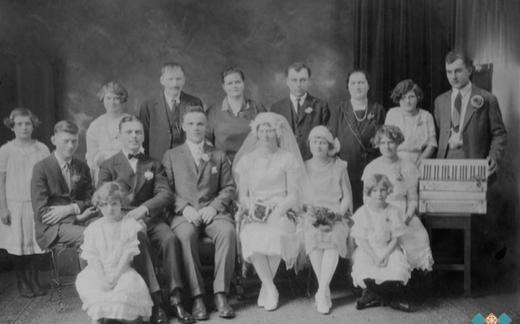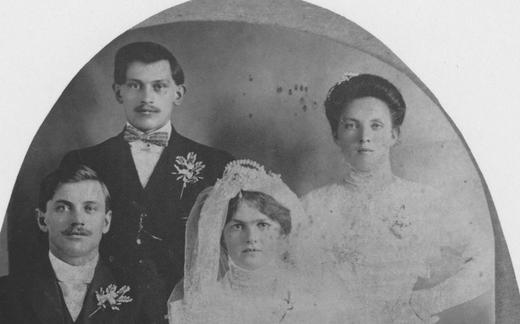 John in/and Katherine Hace Shega Holy Family Church Julij/July 26, 1909 Sprednja vrsta, L-D/Front...