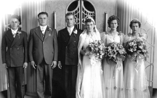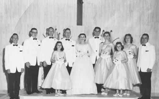 Arthur in/and Jeanne Young Tome St. Anthony Church Junij/June 9, 1956 L-D/L-R: Leonard Medin,...