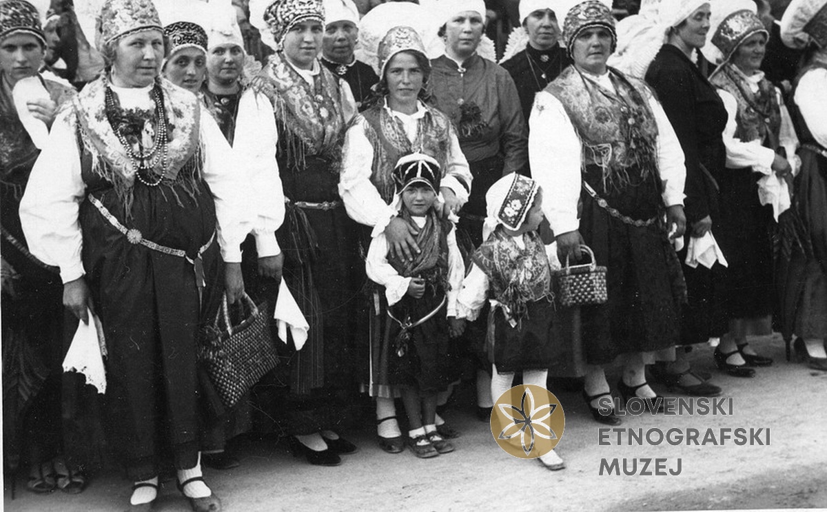 Iz Šantlove zapuščine, dekliška pražnja noša. Sv. Ivan pri Trstu.