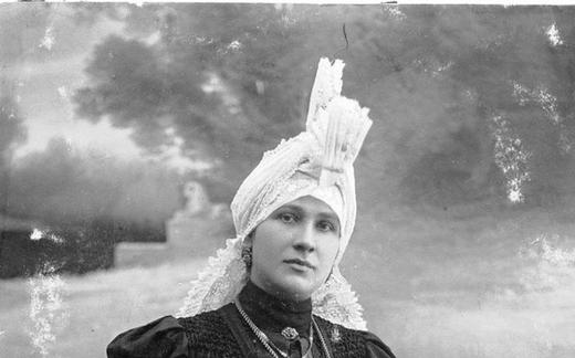 Goričanka v kmečki obleki pred 1. svetovno vojno. Foto: Atelier Weiss, Gorica.