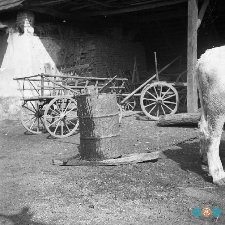 Gnoj vozijo v sodu na njivo, Dokležovje v Prekmurju. Teren I - Koroška, Štajerska, Prekmurje.