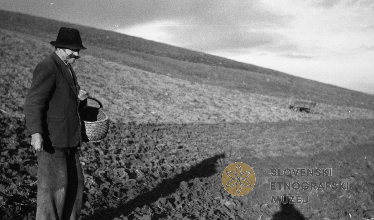 Horvatovi pomagajo Stajnkovim pri sajenju krompirja, Bučečovci. Teren 30- Prlekija (Ljutomer,...