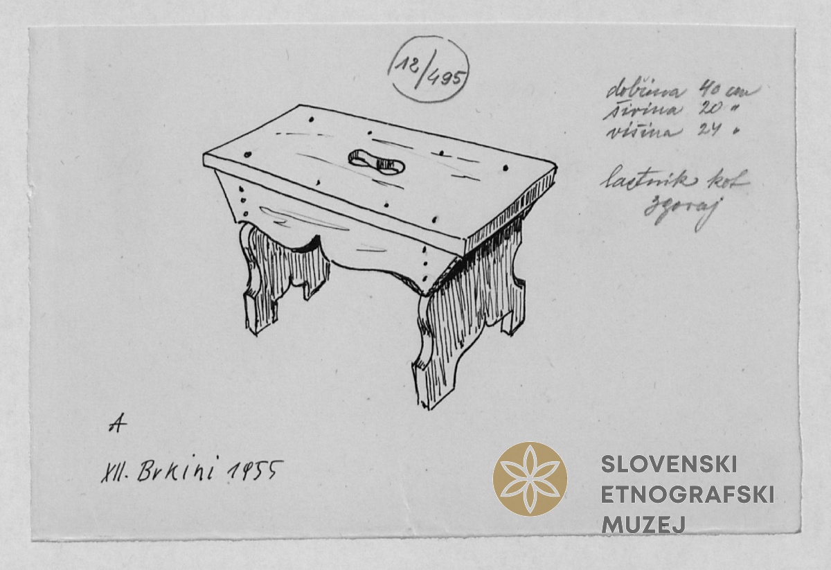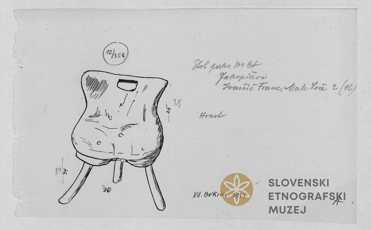 "Stou" (stol). Lastnica Marija Korošec- pri Korošcu, Medvedjek 4...