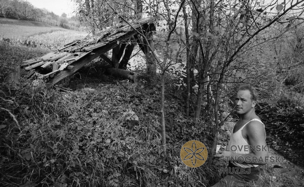 "Šev?nca" za sadje sušit (sušilnica, nekoč tudi za lan), pri Božičnikovih, Male Vodenice...