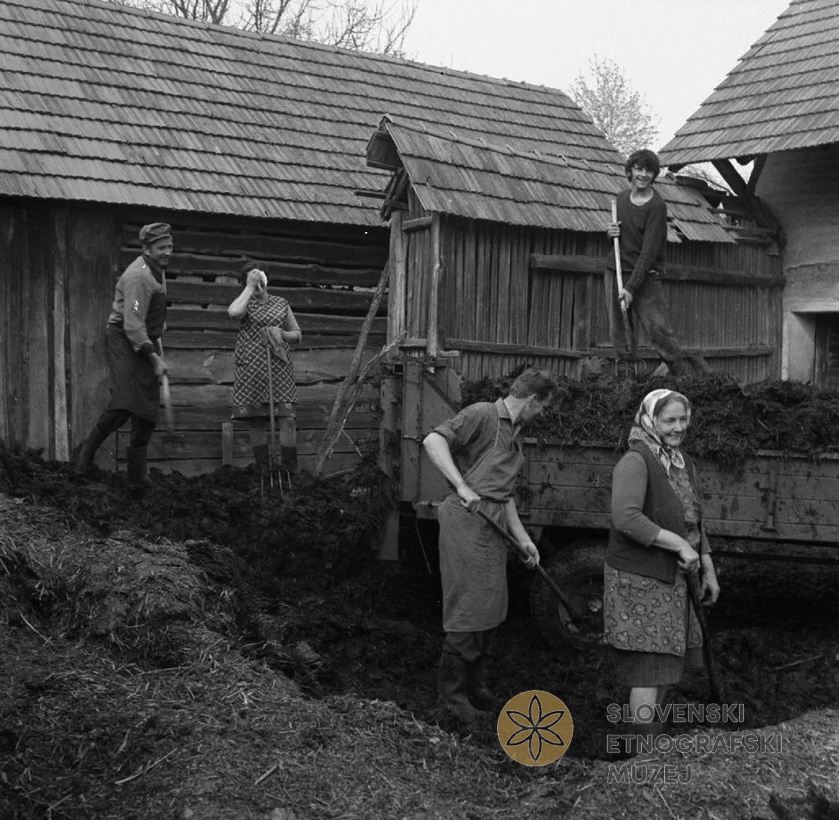 Nalaganje gnoja pri Vivodinskih, Drašiči 34. Teren 22 - Drašiči, Bela Krajina. Posneto v času...