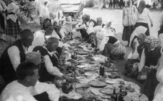 Balinovac pri Prokuplju. Družba, ki je bila na kosilu pri učitelju Savkoviću in ob katerem je...