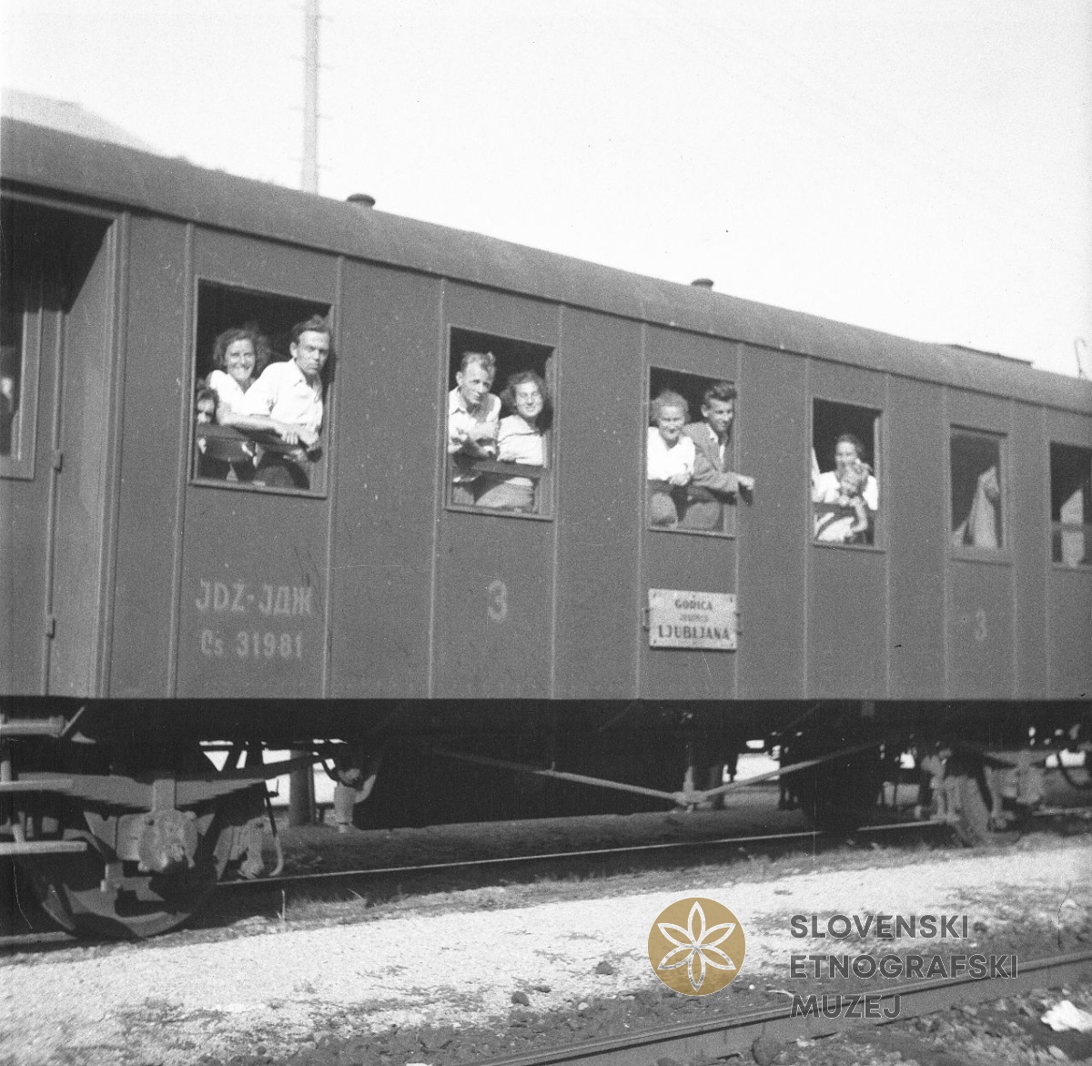 Ekipa na vlaku na poti domov. Teren 8 - Trenta - Bovec, 1.7. - 31.7.1952.
