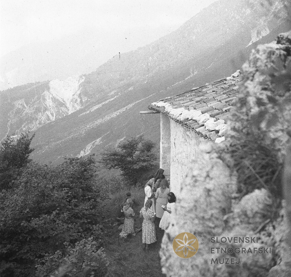 Ob cerkvici Sv. Margete pod Stolom med mašo, ki je 1x v letu. Teren 7 - Kobarid, 3.7. - 3.8.1951.