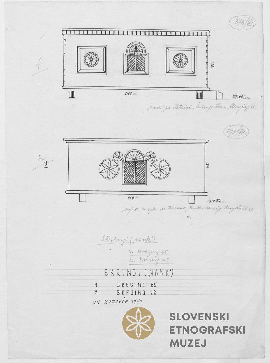 Bank (skrinja) v izbi. Lastnica Terezija Tonkli - pri Bučanu, Breginj 28.