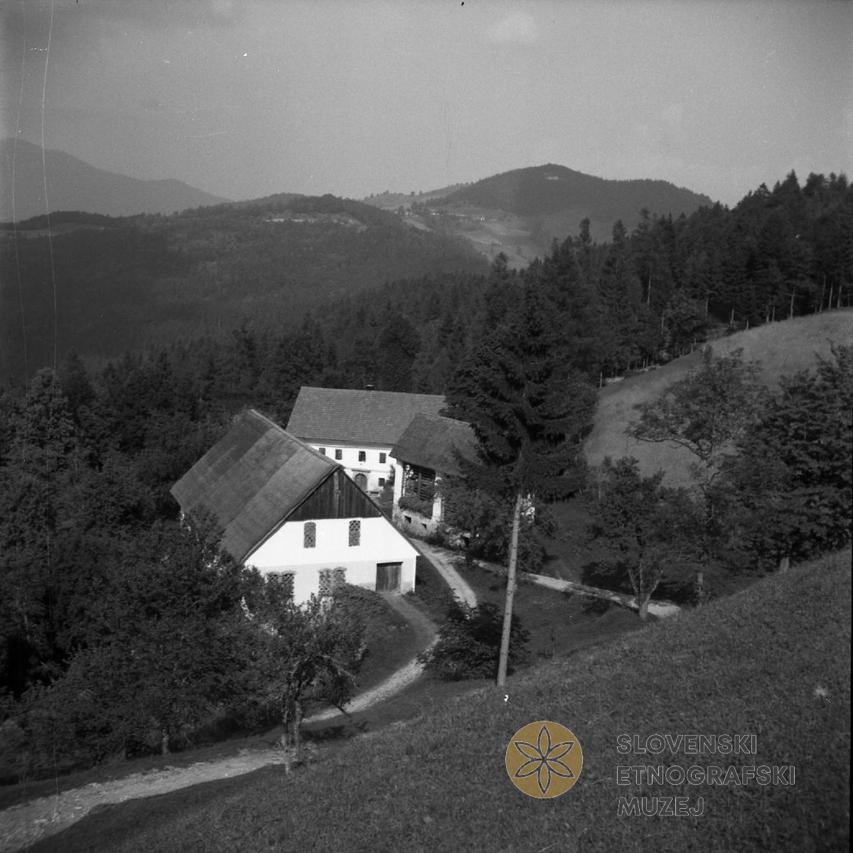 Samotna kmetija, "Zavrham", Cerkljanski Vrh 11 (strma streha na štali- hlevu). Teren 11-...
