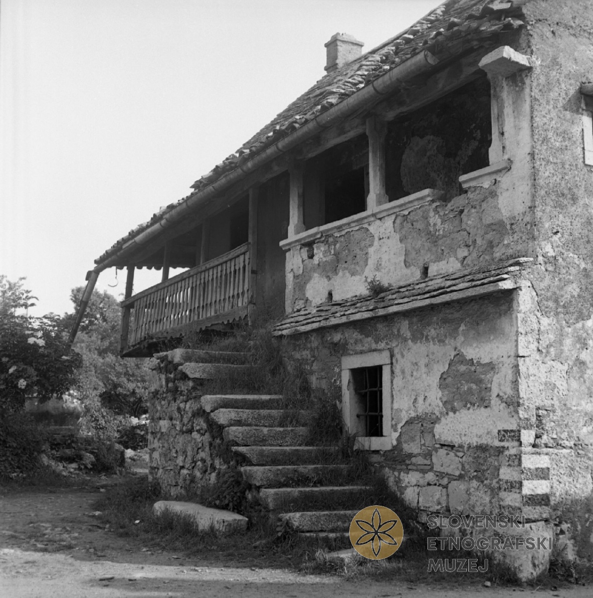 Opuščena Škrateljnova hiša v Divači (17. -19. stol.). Teren 25 - Kraška hiša (1969).