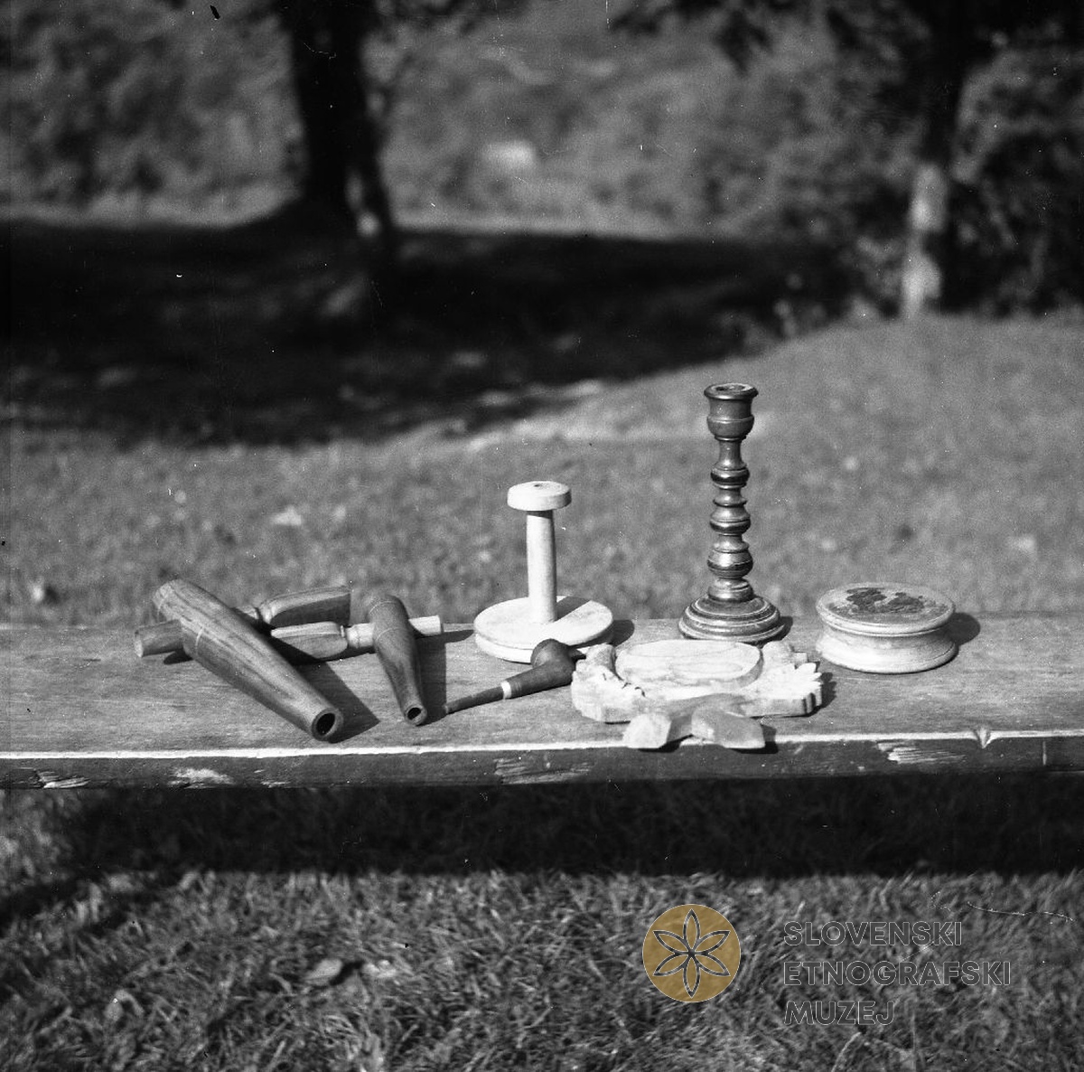 Razni izdelki Jožeta Bakšeta, Cerov Log 38 (Kira), pipi za vinske sode, špula za kolovrate, rožnjak...