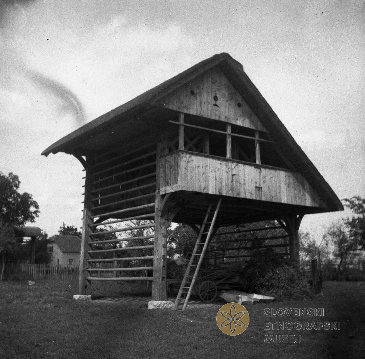 Hlev (svinjak) in drvarnica s koruznjakom (zgoraj), Luzar Franc, Dolenja Stara vas 17. Teren 9-...