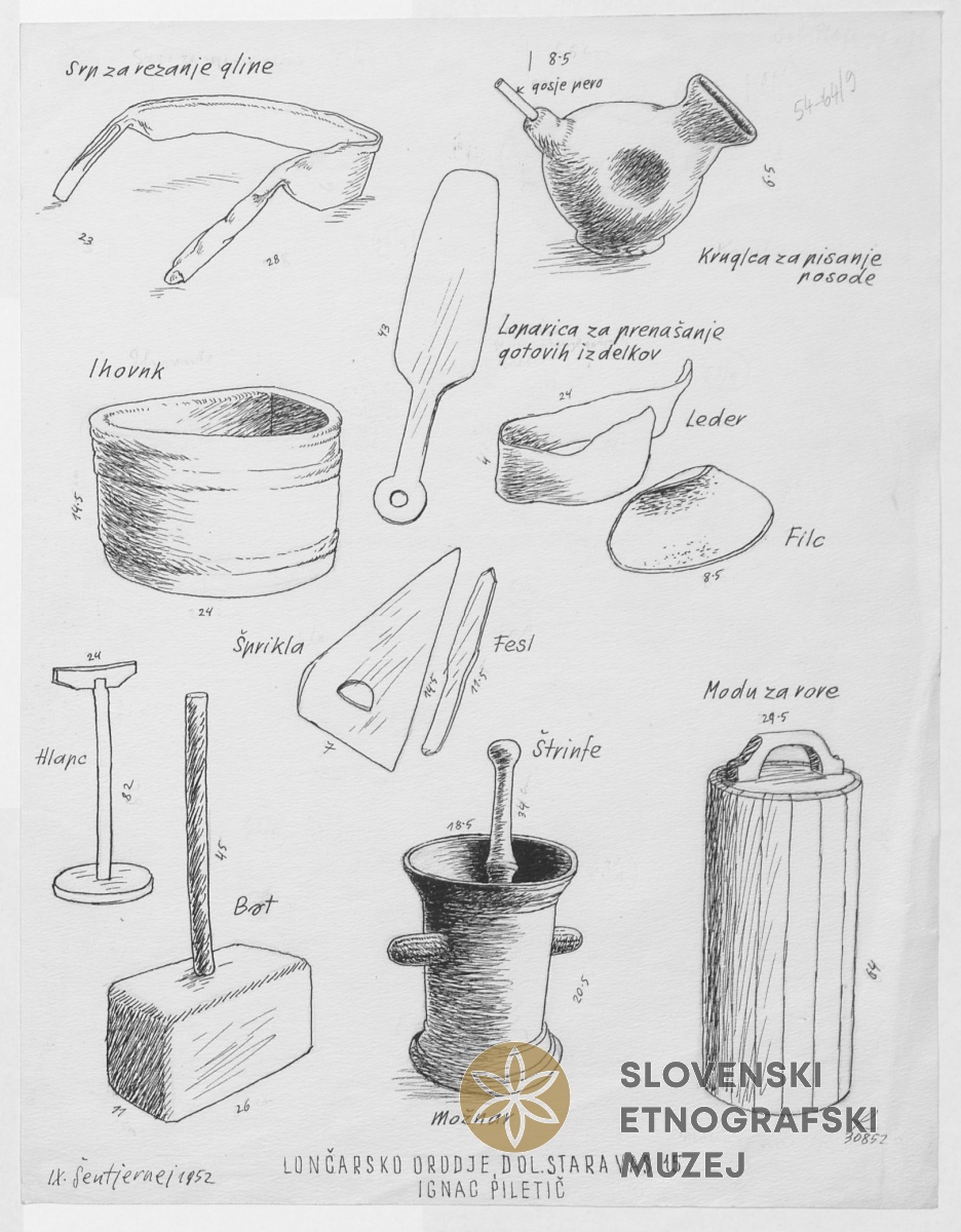 "Hlapc", lončarsko orodje. Lastnik Ignac Piletič, Dolenja Stara vas 15...