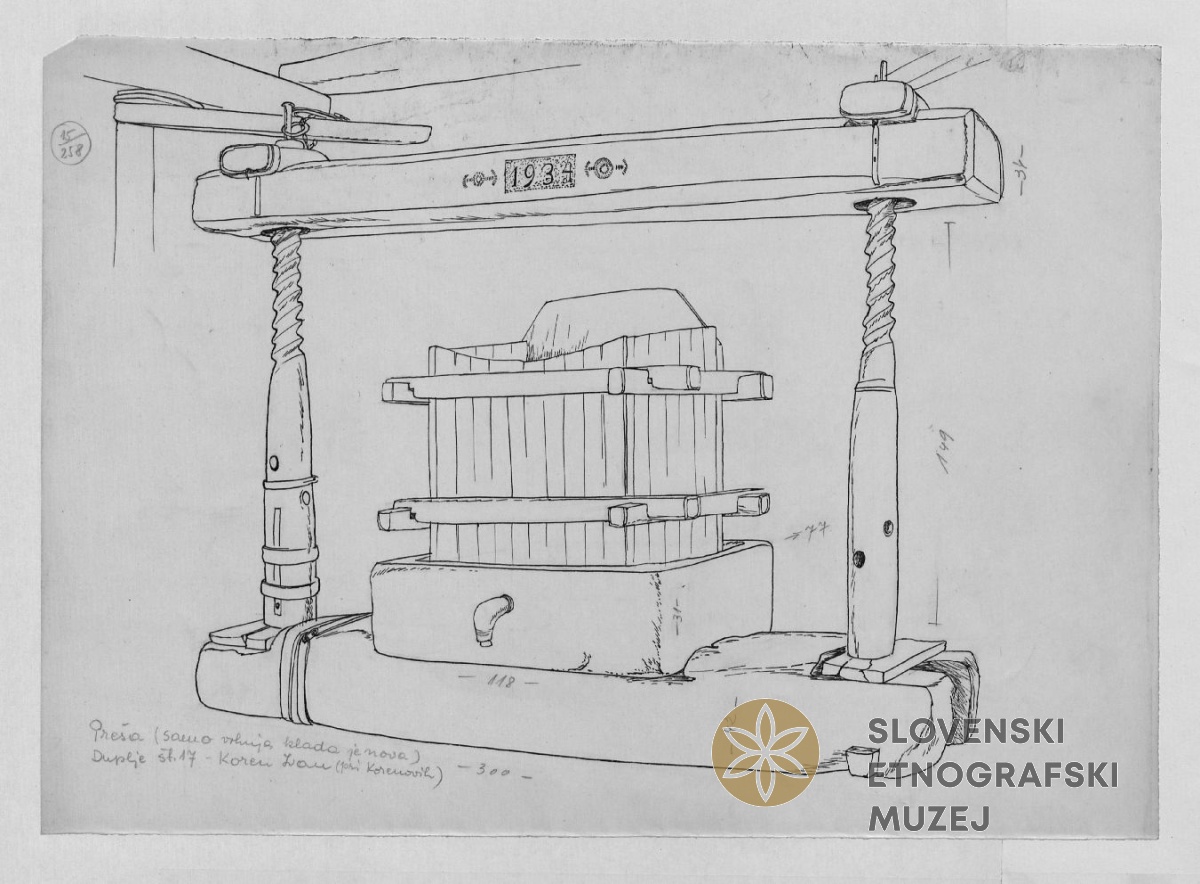 Preša z novo zgornjo preklado. Lastnik Ivan Koren, pri Krenovih, Duplje 17.
