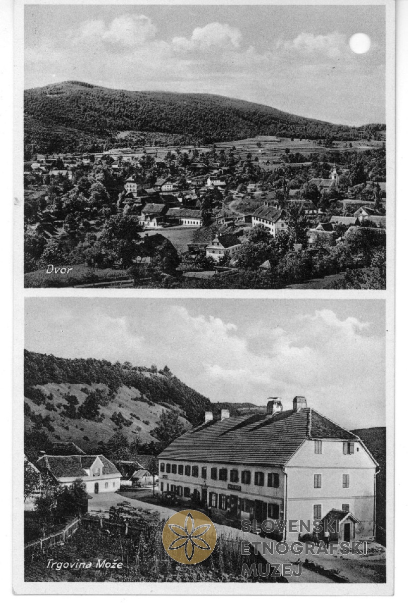 Dvor pri Žužemberku. Na razglednici Dvor in Trgovina Može. Med leti 1928 in 1947.